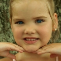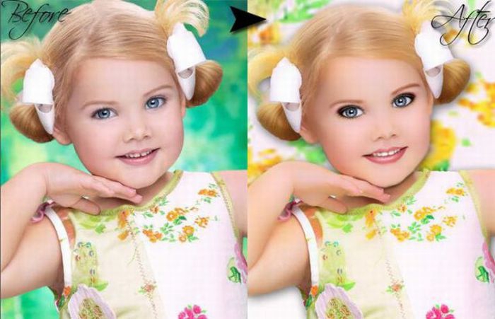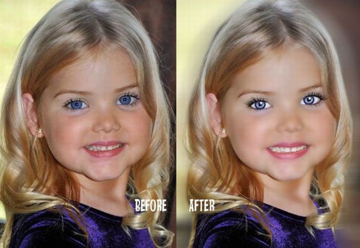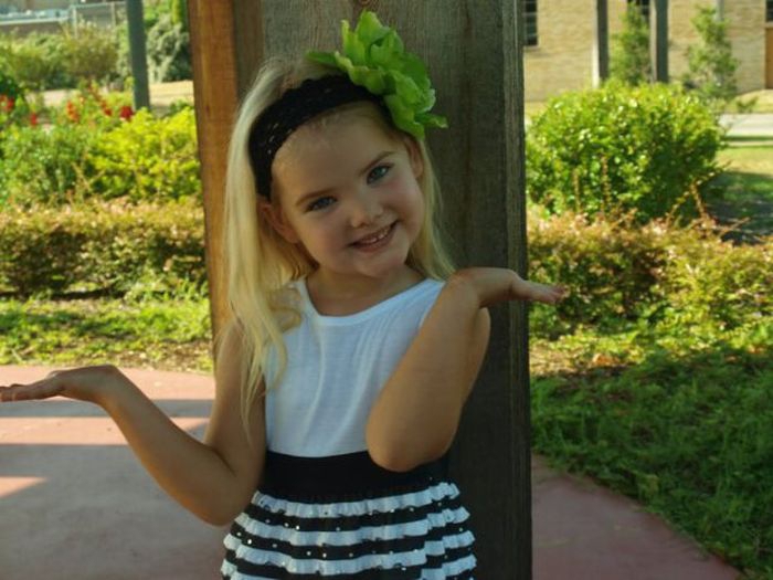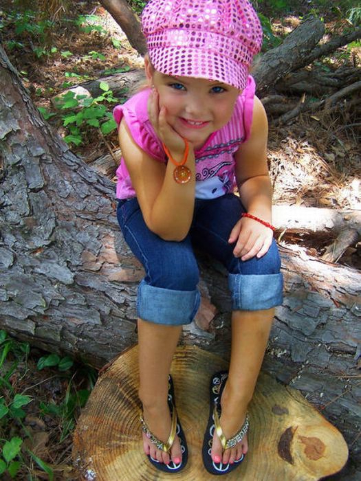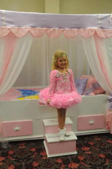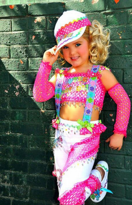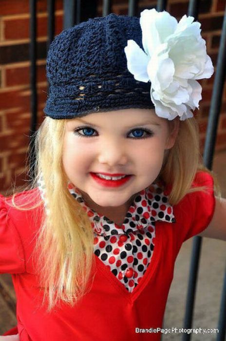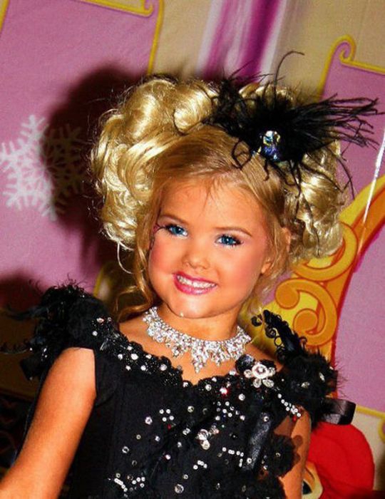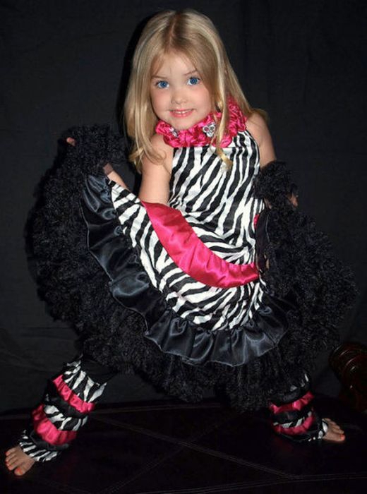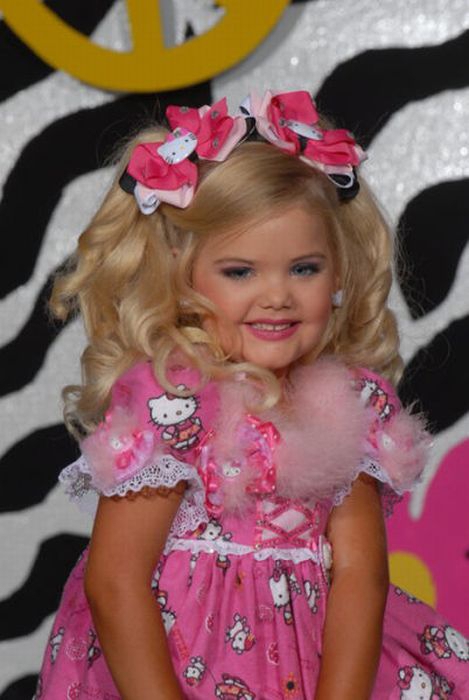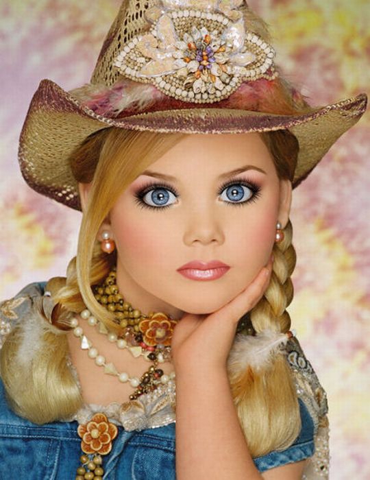 Maža lėlė. Šitai mergaitei tik 6 metai, tėvai ją dažo ir aprengia.