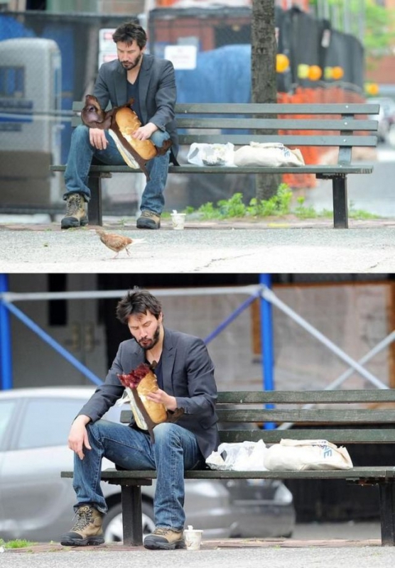 Nuobodžiaujantis Keanu Rivsas valgo sumuštinį :)