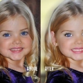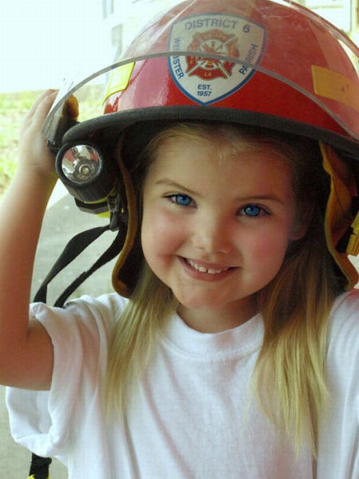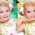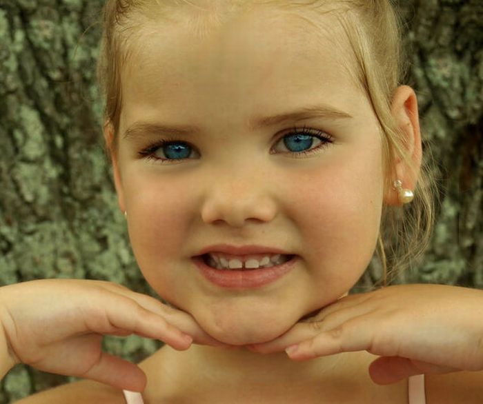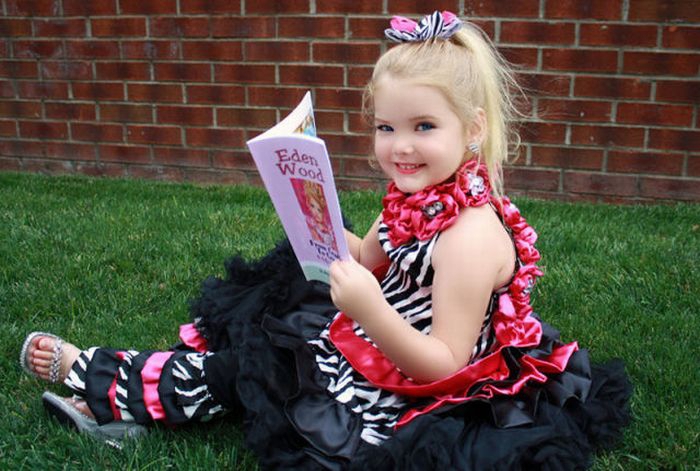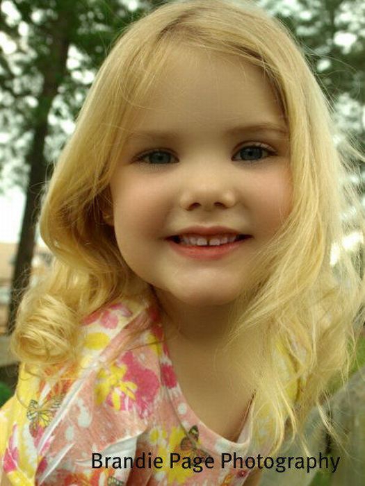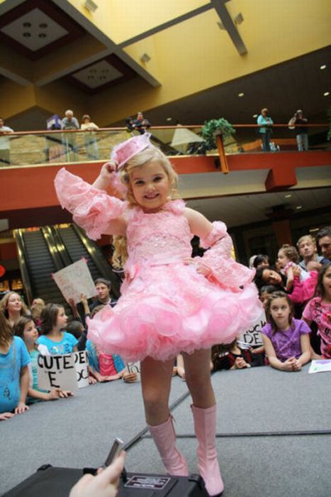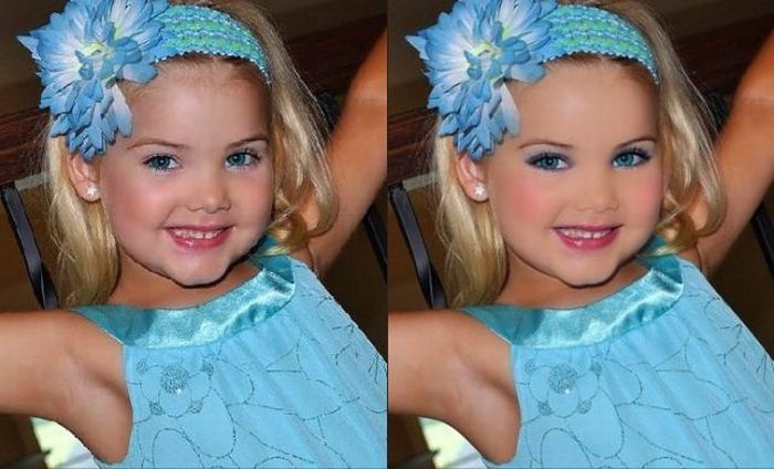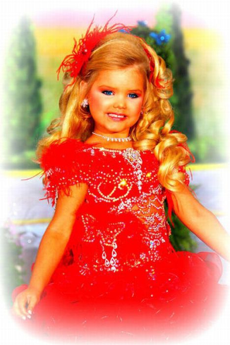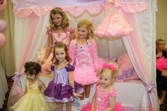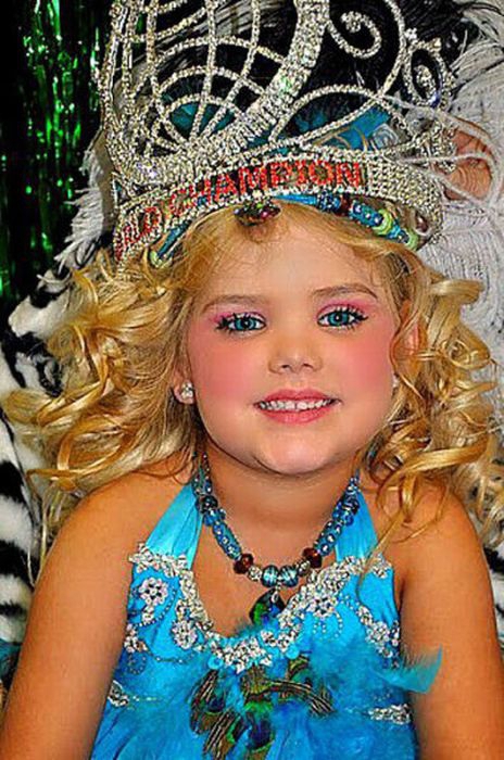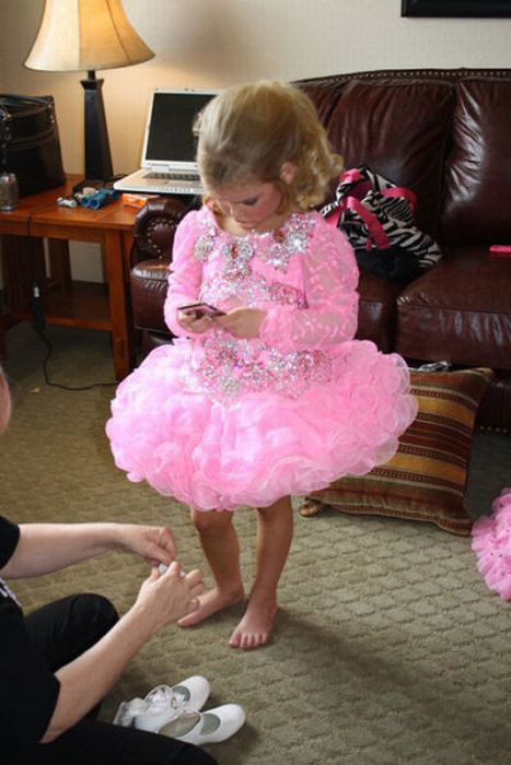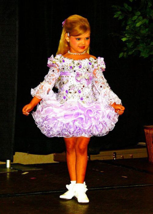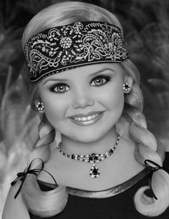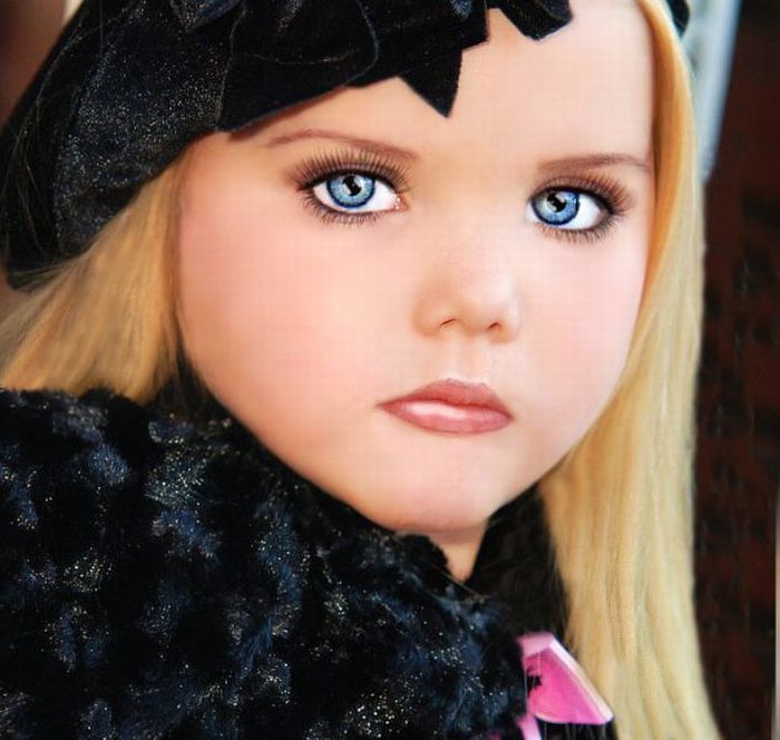 Maža lėlė. Šitai mergaitei tik 6 metai, tėvai ją dažo ir aprengia.