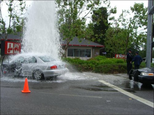 Sugedę hidrantai ir mašinos